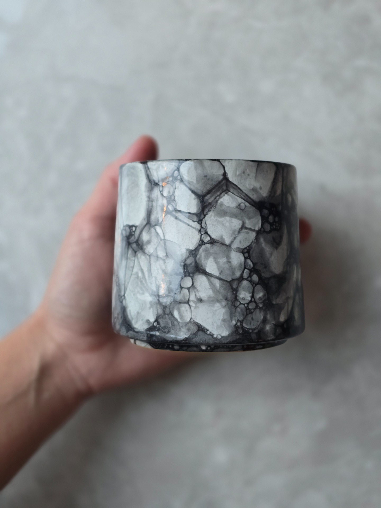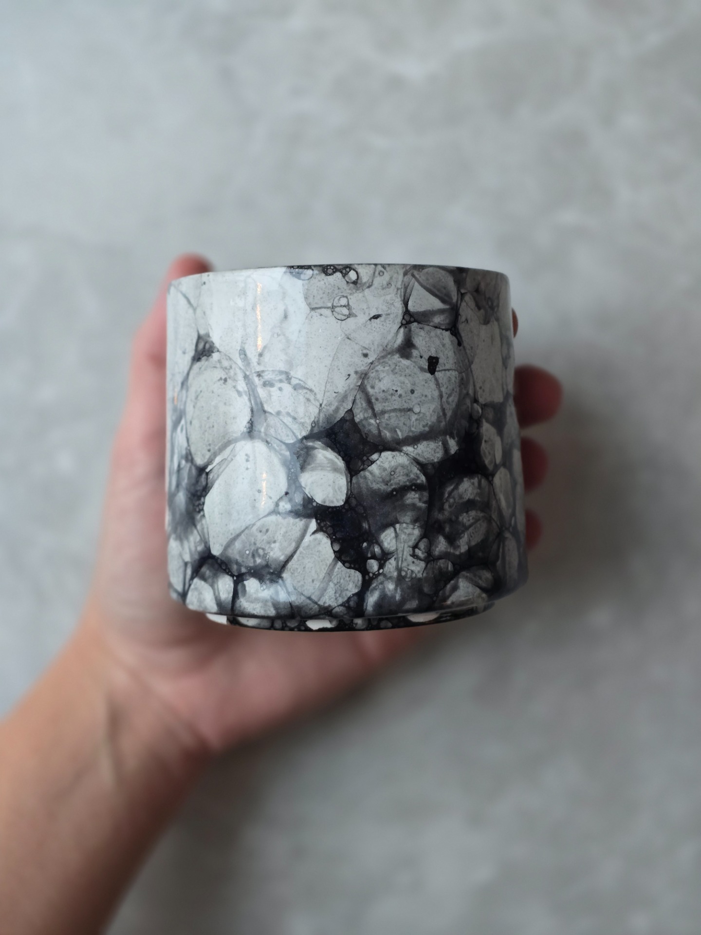 En kopp som håller hela morgonens stämning. Klädd i ett monokromt skuggspel.