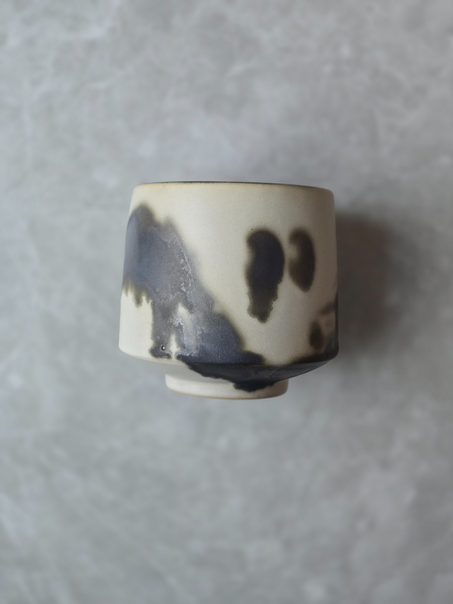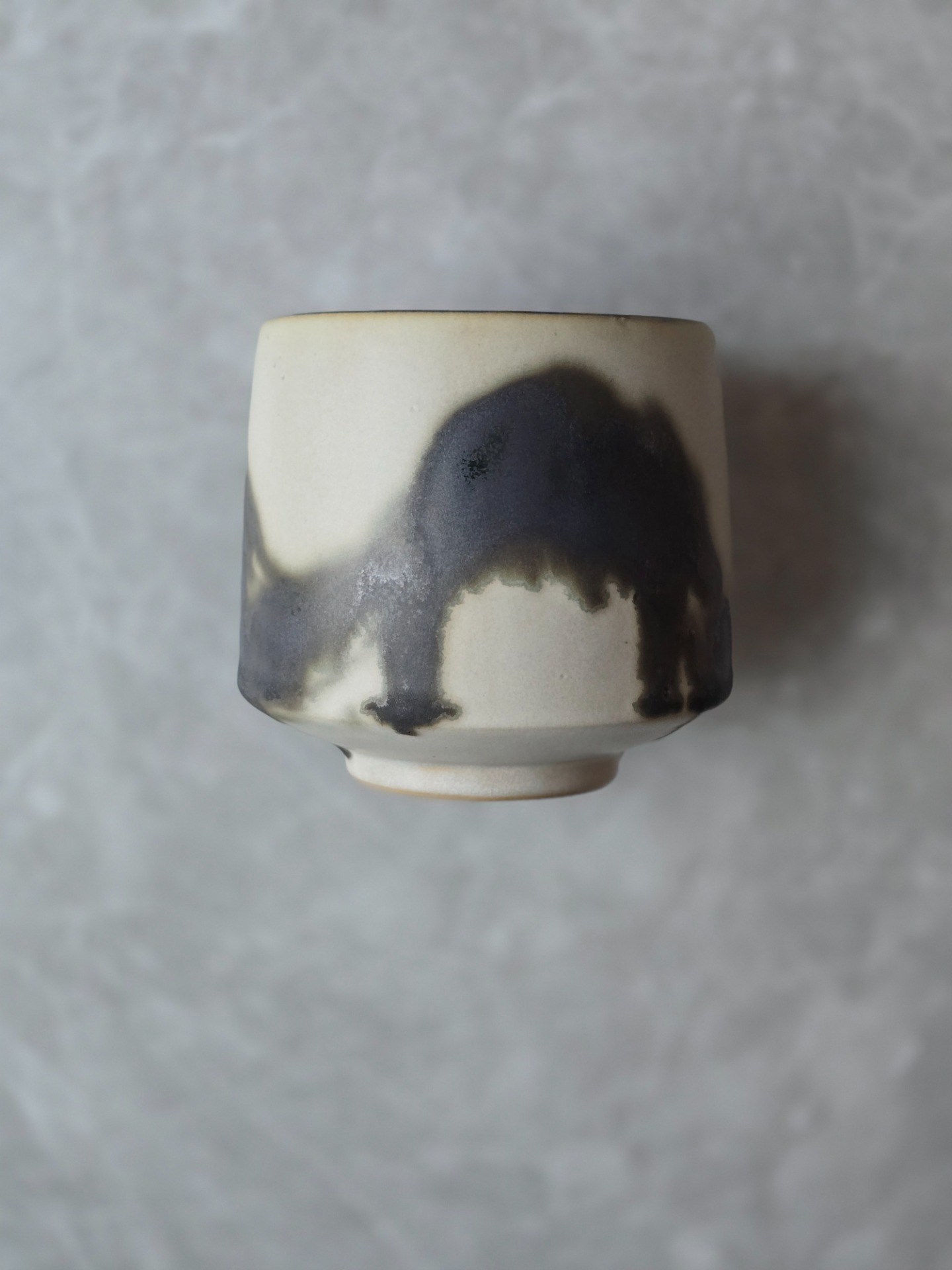 Varje kopp får sin egen personlighet - lite ojämn, lite oväntad men alldeles egen. Glasyren rör sig mellan blankt och matt, ljus och mörker. Utsidan är inte helt slät utan bär små ojämnheter.