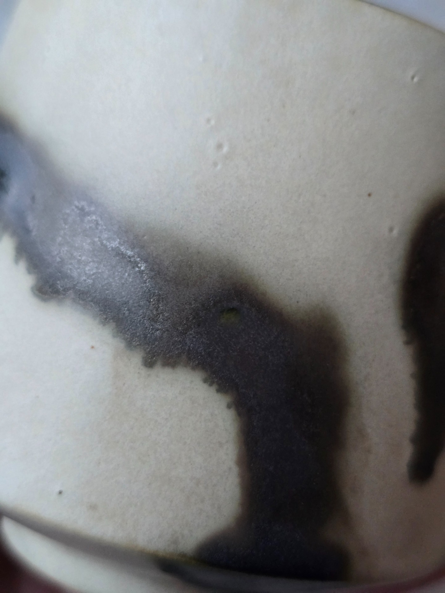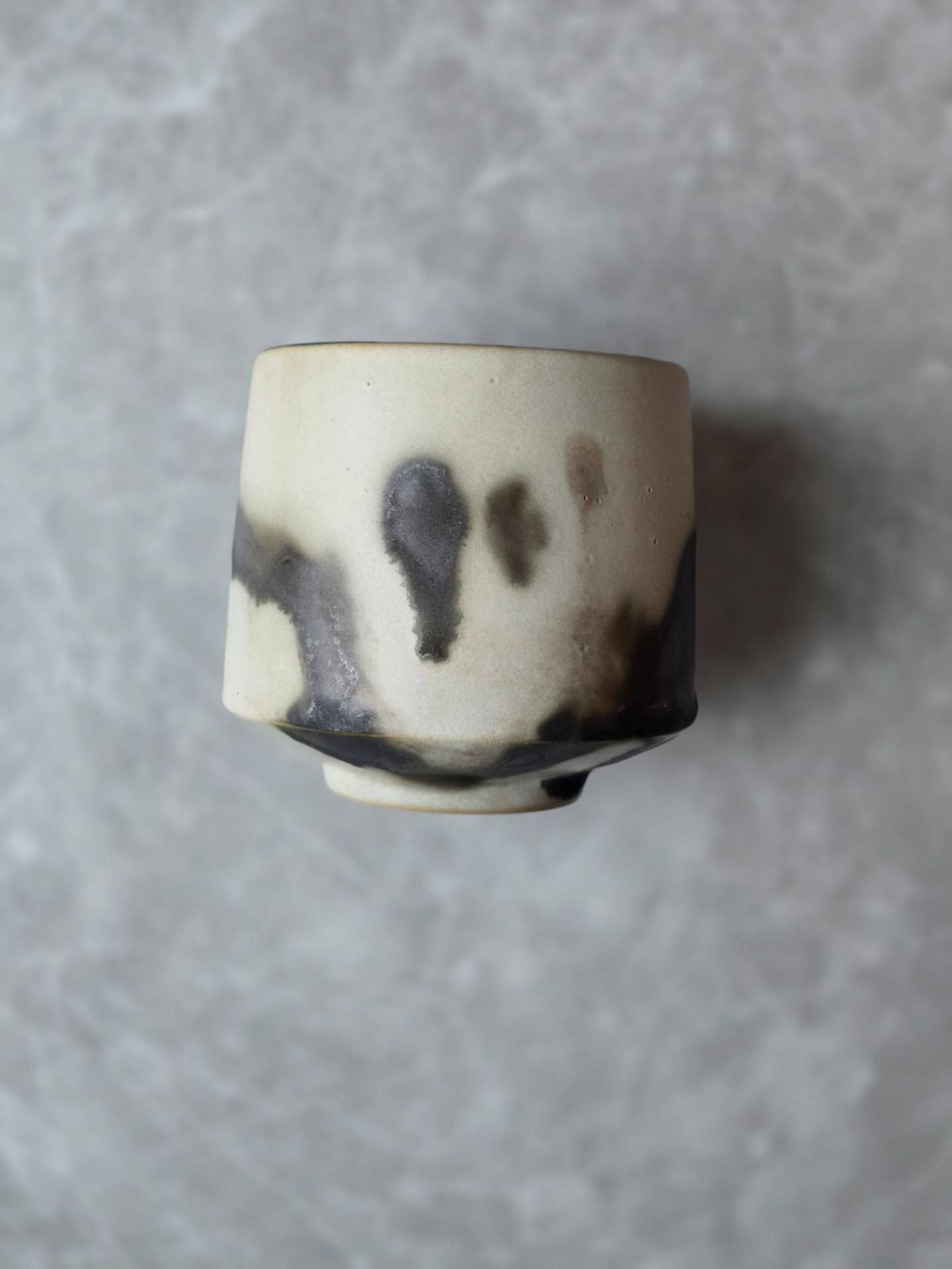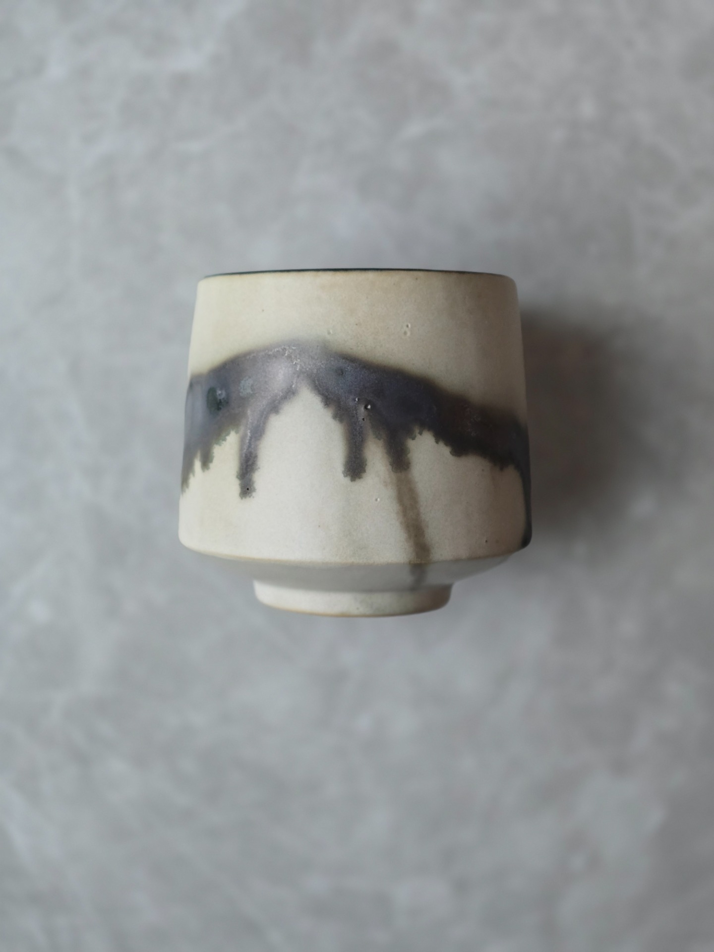 Varje kopp får sin egen personlighet - lite ojämn, lite oväntad men alldeles egen. Glasyren rör sig mellan blankt och matt, ljus och mörker. Utsidan är inte helt slät utan bär små ojämnheter.