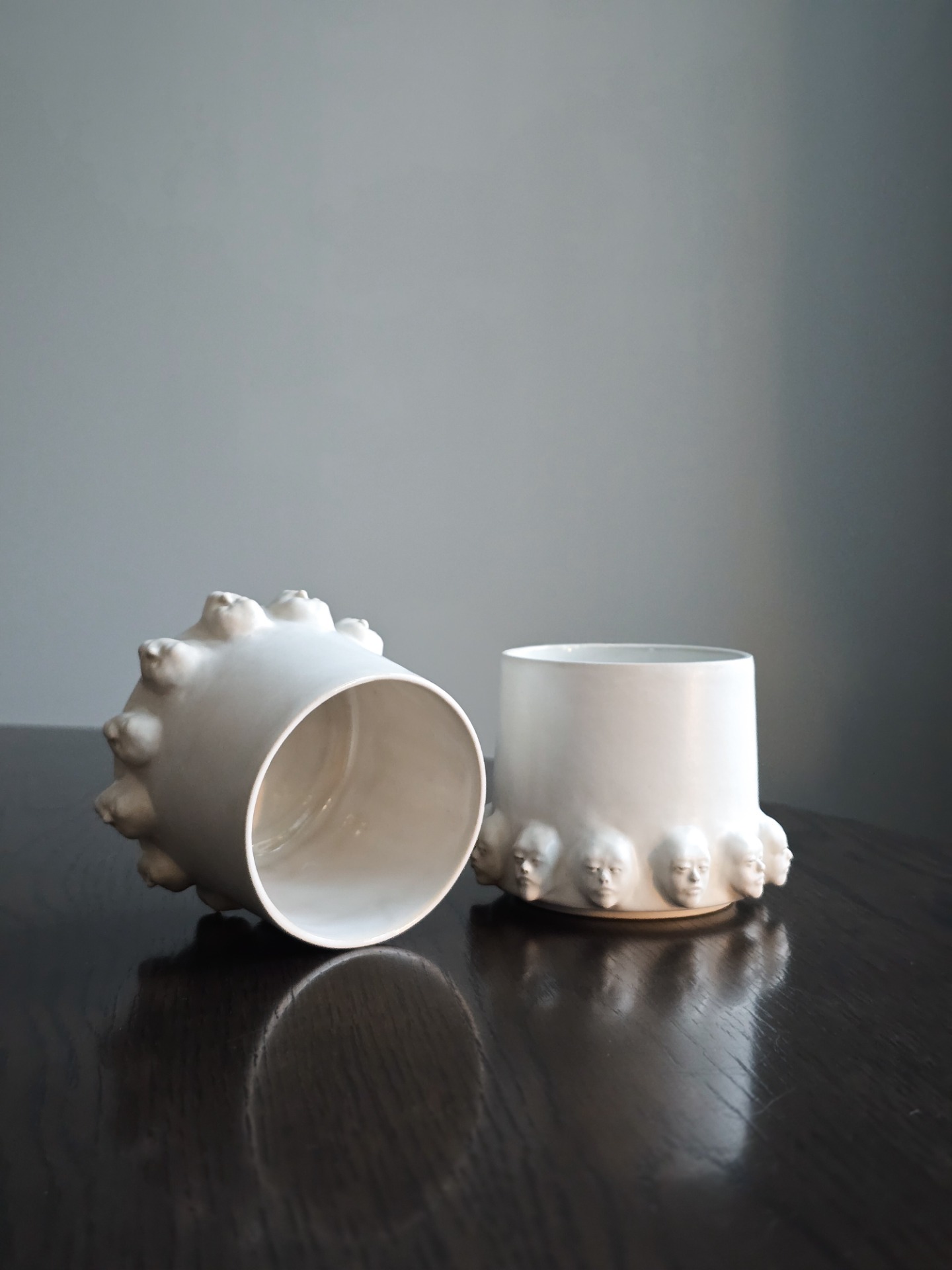 Formgiven med känsla för både estetik och funktion. Annorlundaskap i mötet med vit elegans. Glaserad i en satinmatt vit utsida och en blank vit insida.