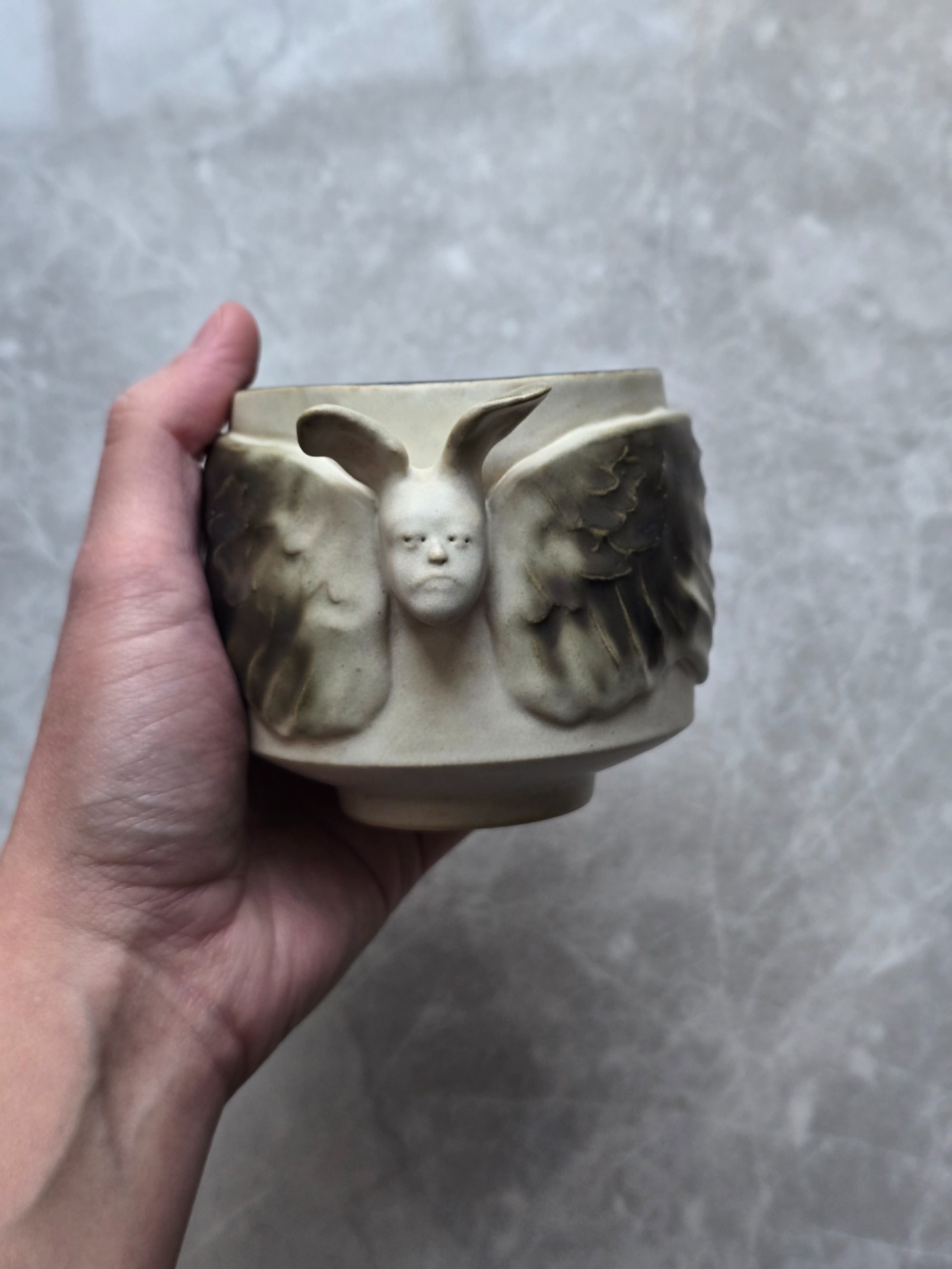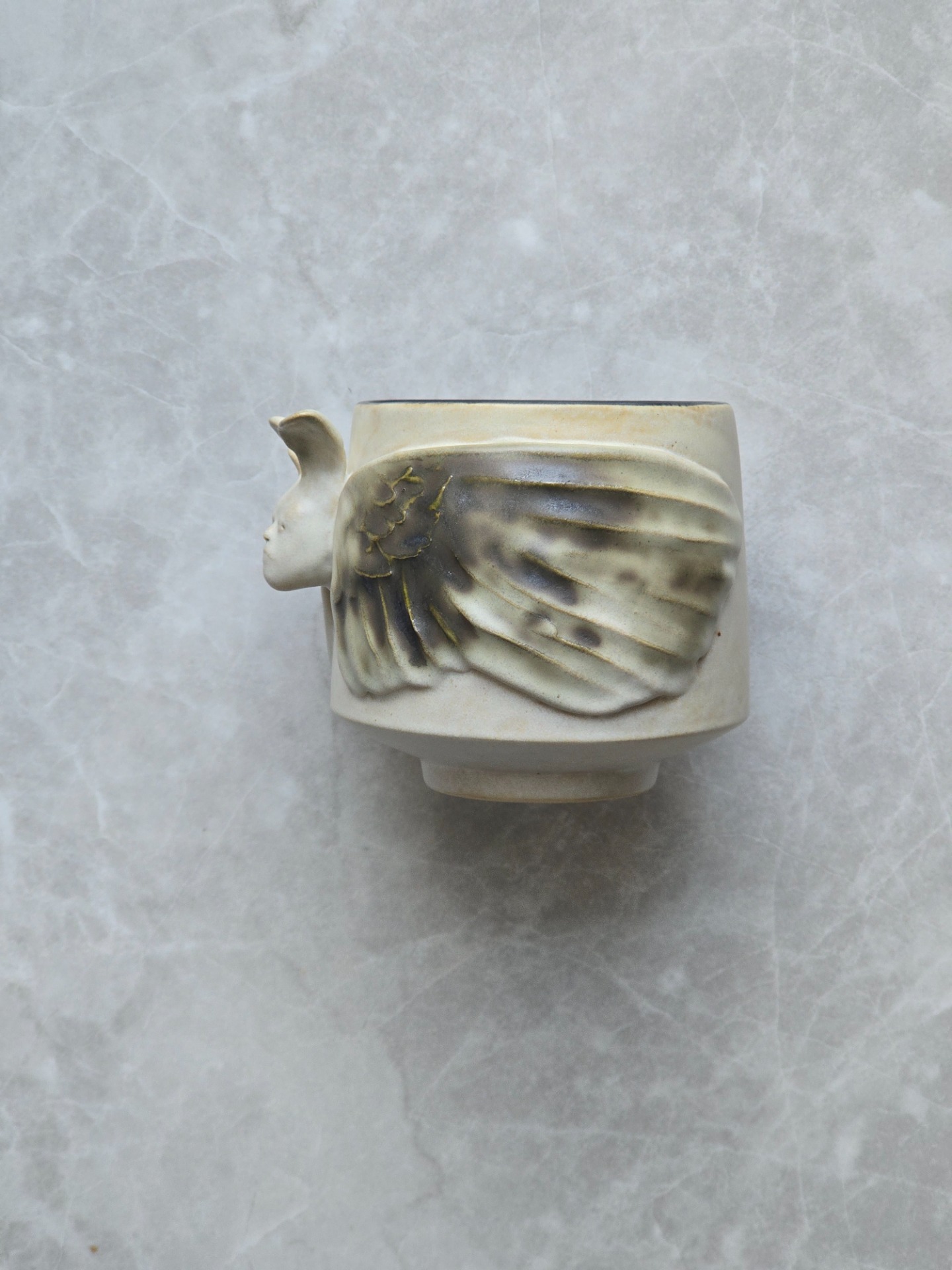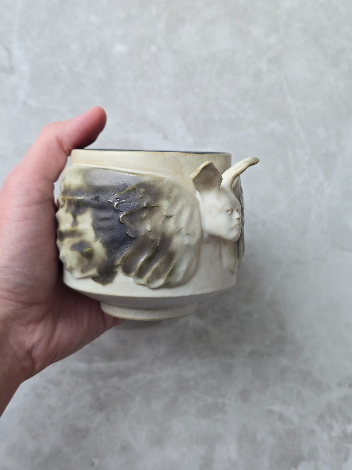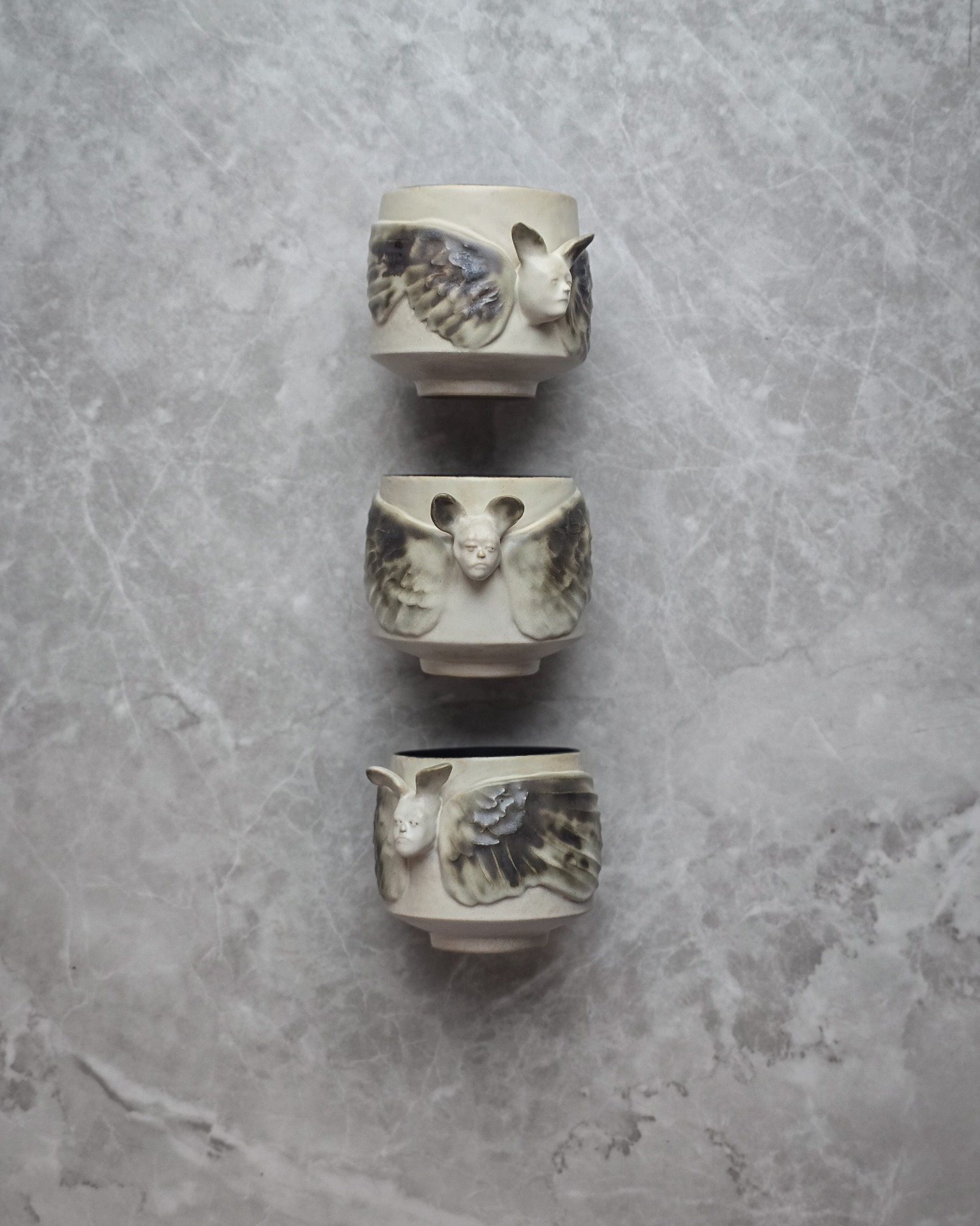 Varje kopp bär sin egen varelse. Glasyren rör sig mellan blankt och matt, mellan ljus och mörker. Utsidan är inte helt slät, utan bär små ojämnheter som ger liv och karaktär. Insidan är glaserad i en mattsvart nyans.