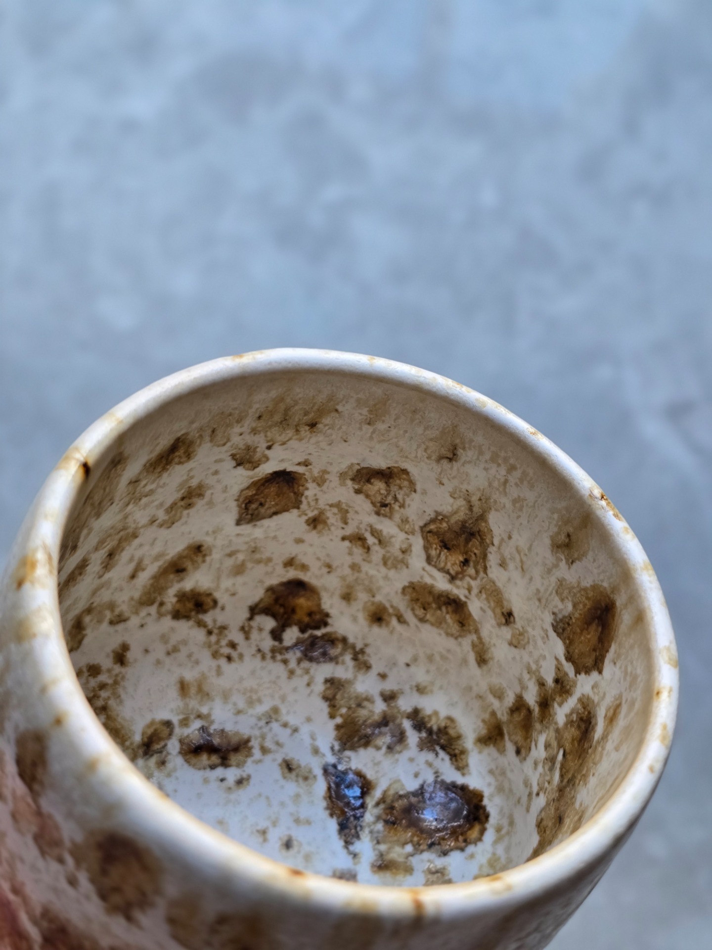 Kaffekopp glaserad i smörkola.