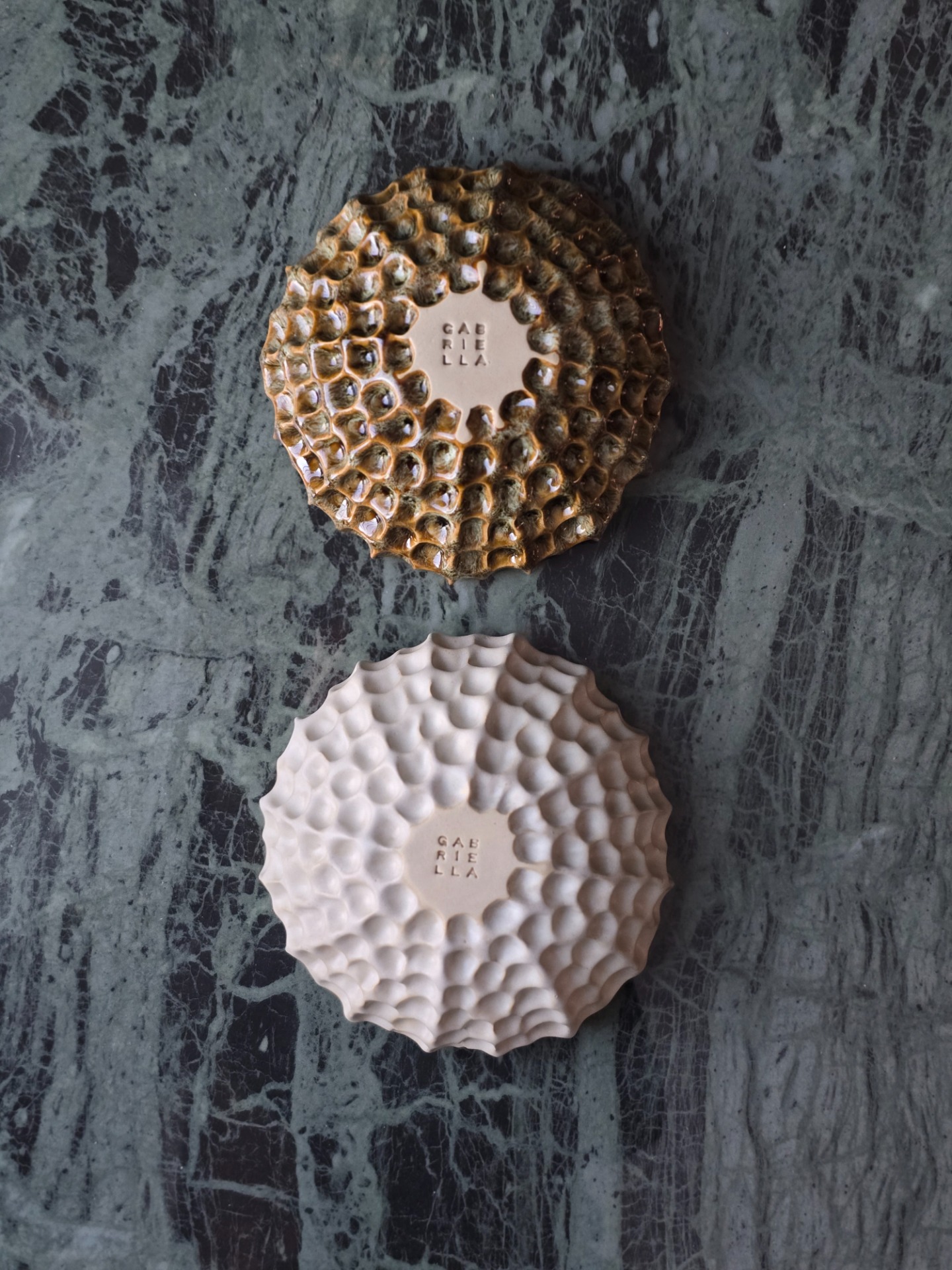 Då jag skulpterar för hand kan variationer i färg och form förekomma och är naturliga spår av det mänskliga hantverket.